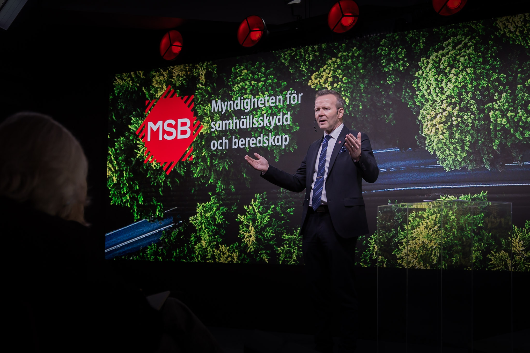 I sitt inledande anförande betonade generaldirektör Mikael Frisell den ökade allvarsnivån i omvärlden och framhöll att Sverige nu på kort tid måste bygga ett starkt civilt försvar – tillsammans.