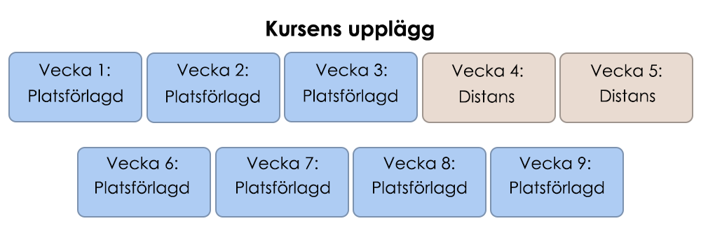 Kursen genomförs med fokus på aktivt lärande genom bland annat föreläsningar, diskussioner, scenarioövningar/case, seminarier, simulering samt interaktivt via lärplattform.